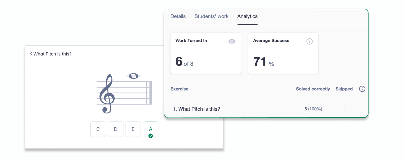 The combination of a professional notation editor, auto-graded worksheets, performance assessments, and composition assignments means music teachers at different levels, from general music, band, theory, and AP, are all working in the same platform. Students encounter it in multiple contexts throughout the school year, which means they don't have to relearn it every time they use it.
