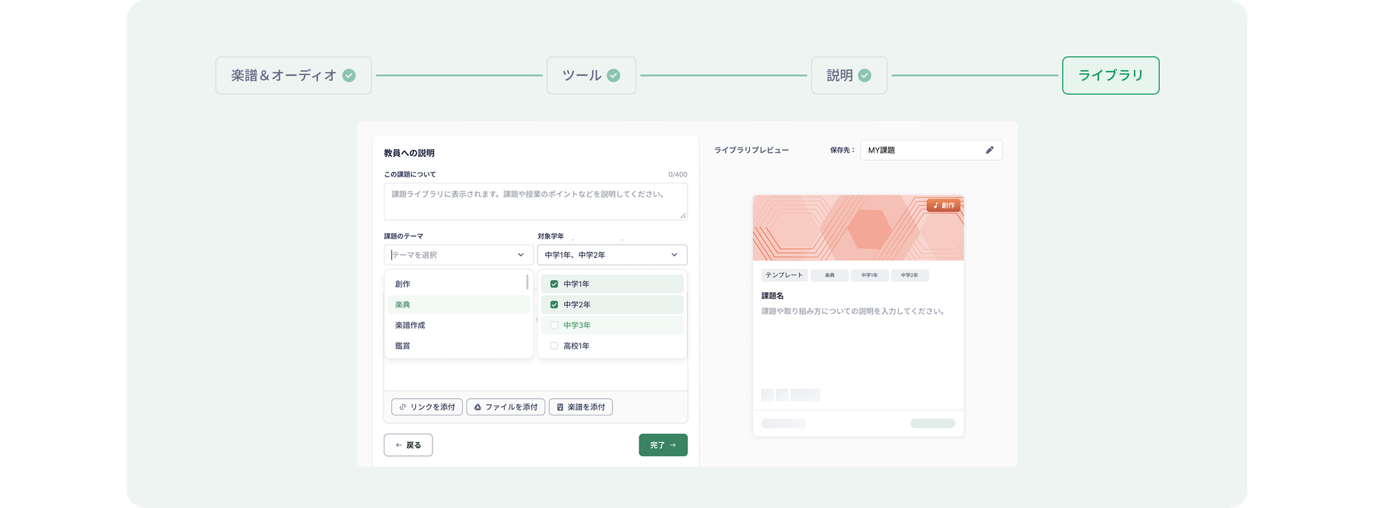 Flat for Educationの利用において、課題作成は最も重要なステップの一つです。創作、歌唱、器楽、鑑賞、どのような授業であっても先生の目的はひとつ。