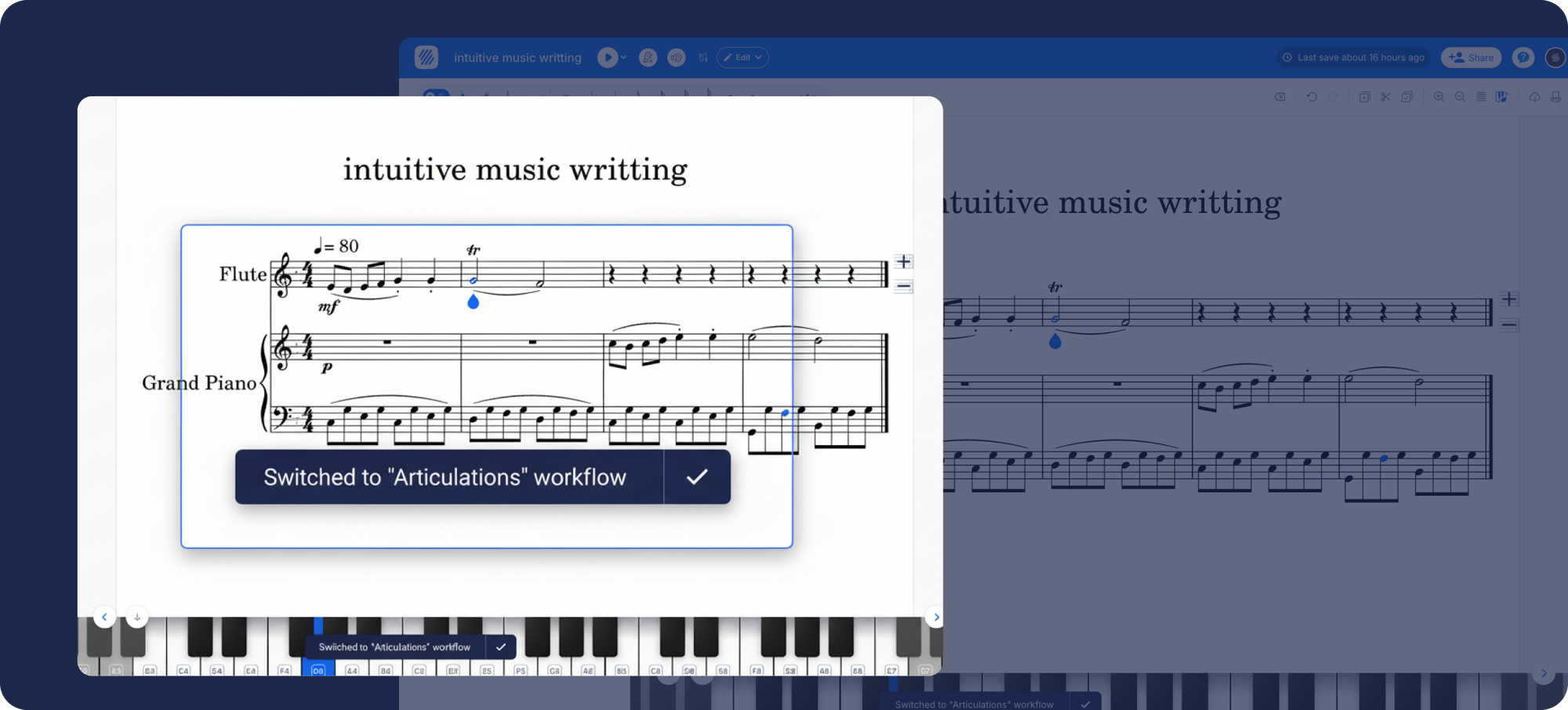 When you switch, a small toast notification confirms which mode is active — so you always know where you are without lifting your eyes from the score.