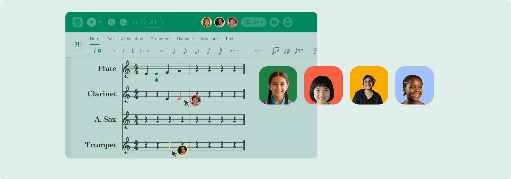Shared Writing is a powerful Flat for Education feature that lets multiple students compose on the same score in real time. It is perfect for: